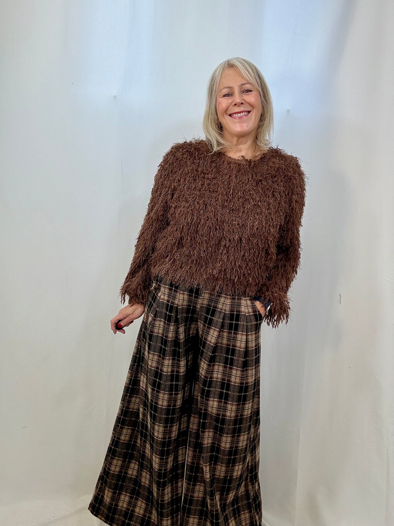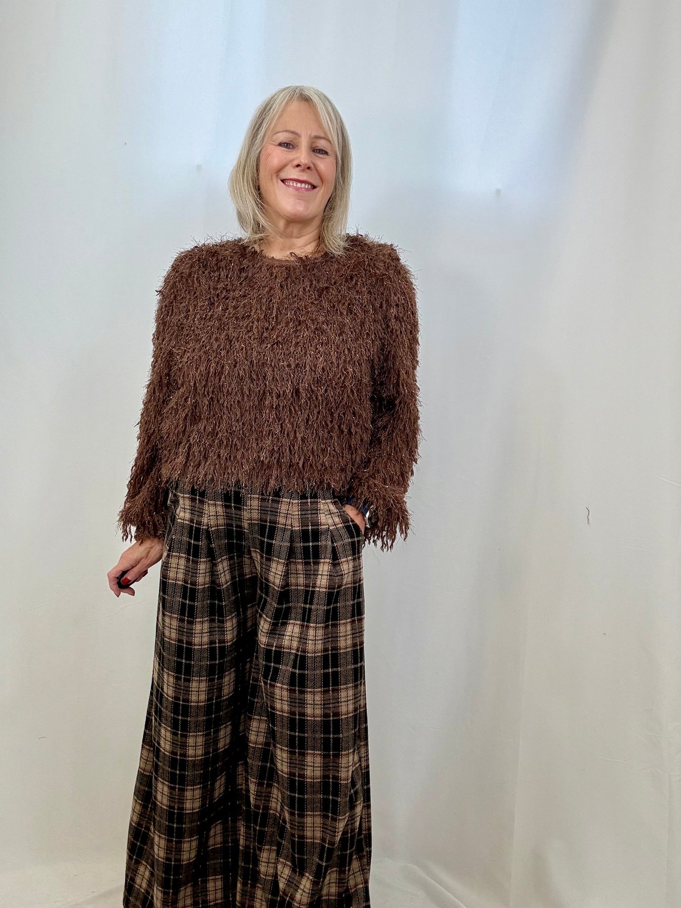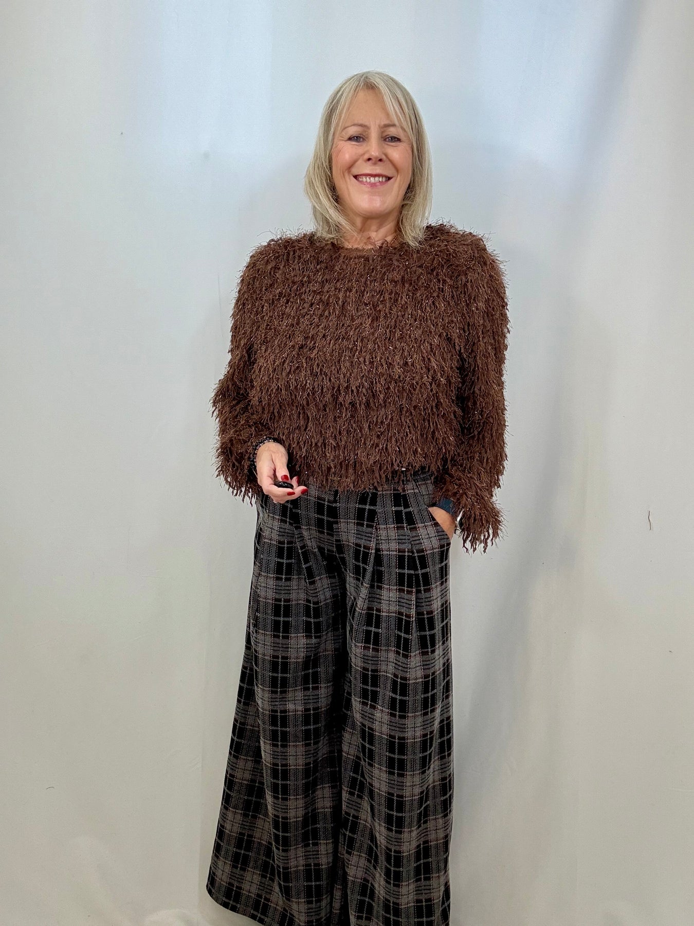 Meet the Darcy check wide trousers—the effortless piece your wardrobe's been waiting for. Featuring a current-season check pattern, these trousers nail the relaxed-yet-put-together vibe with their soft, comfortable fabric and elasticated waist. The wide-leg cut flows beautifully, while soft front pleats add subtle dimension. Practical side pockets keep things functional, and the included belt lets you dial up the polish whenever you want. Casual comfort that actually looks good—no compromise required.