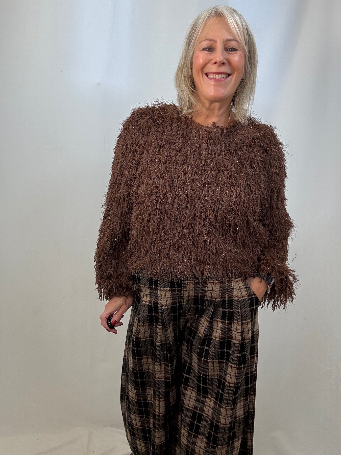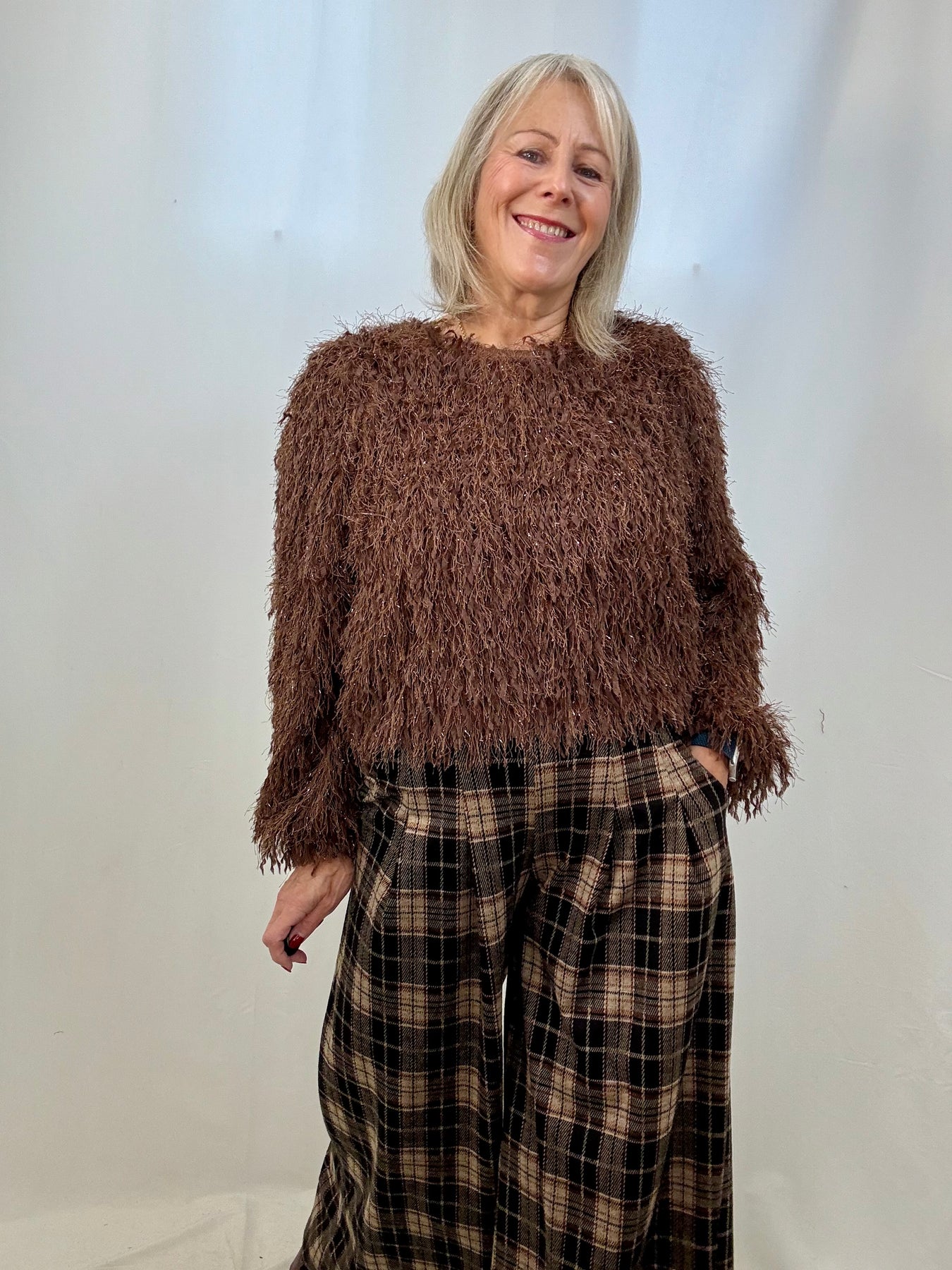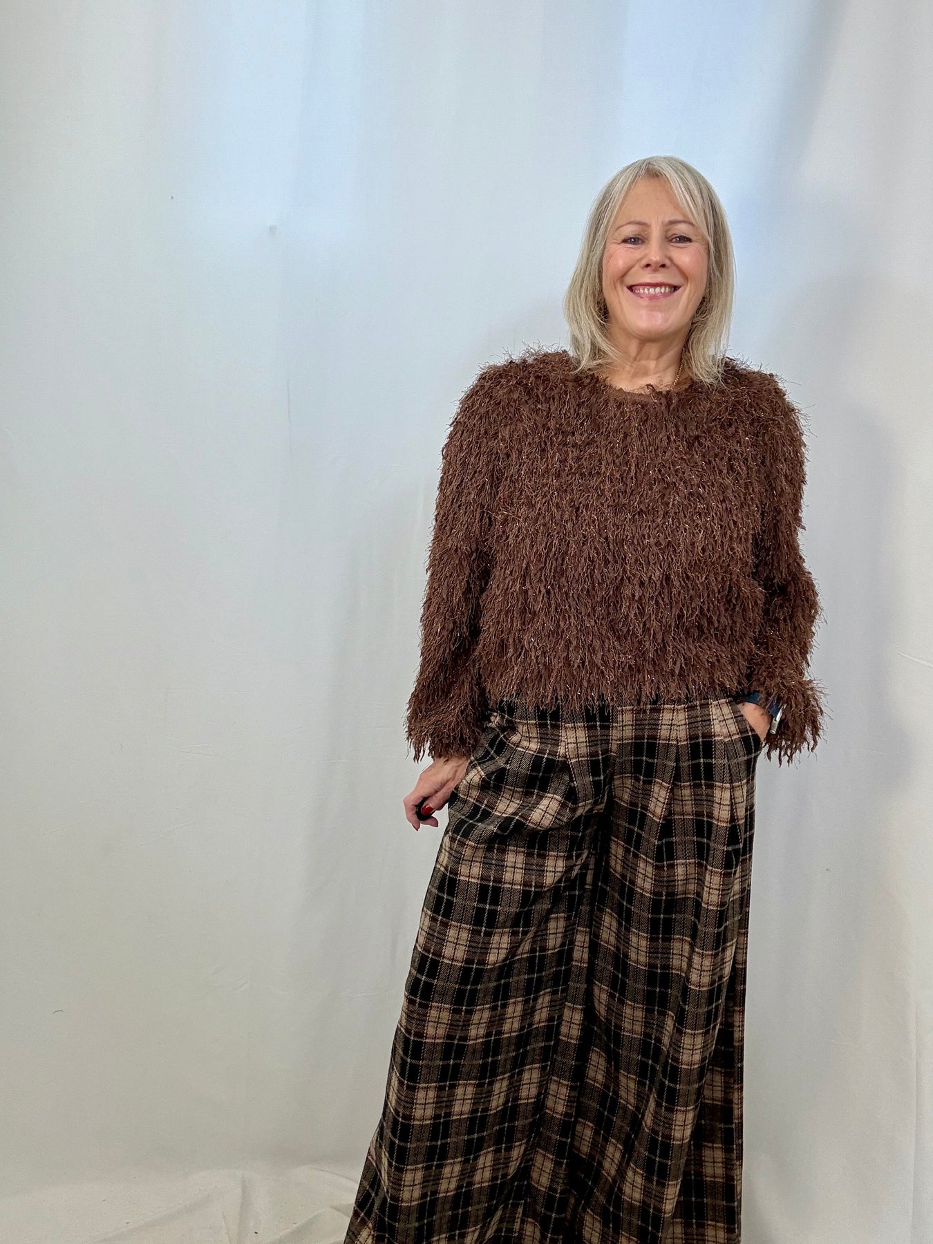 Meet the Darcy check wide trousers—the effortless piece your wardrobe's been waiting for. Featuring a current-season check pattern, these trousers nail the relaxed-yet-put-together vibe with their soft, comfortable fabric and elasticated waist. The wide-leg cut flows beautifully, while soft front pleats add subtle dimension. Practical side pockets keep things functional, and the included belt lets you dial up the polish whenever you want. Casual comfort that actually looks good—no compromise required.