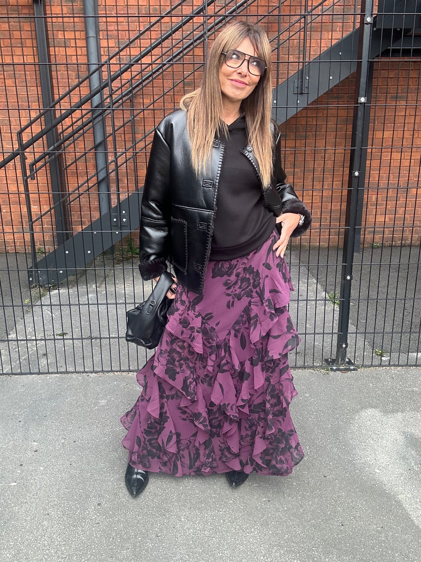 The Stevie maxi skirt combines playful ruffles with a flattering silhouette, crafted from lightweight sheer georgette fabric layered over a short lining. Its elasticated back waistband ensures a comfortable, tailored fit while enhancing movement and flow. Perfect for elevating any outfit with a touch of effortless sophistication.