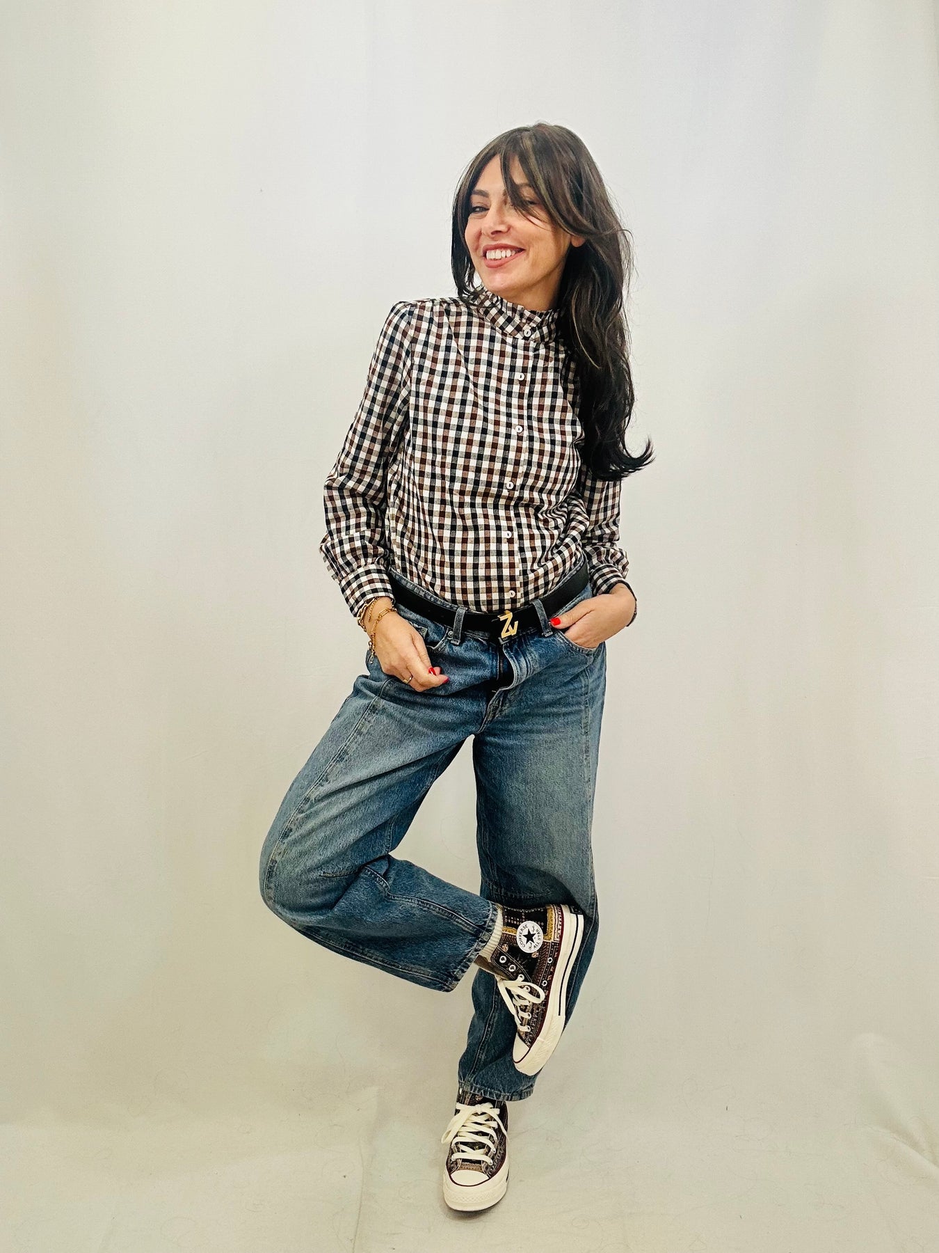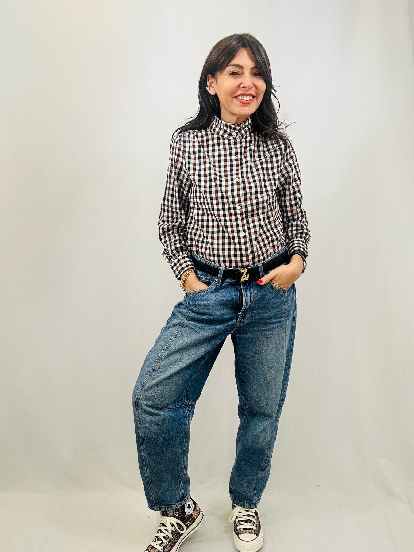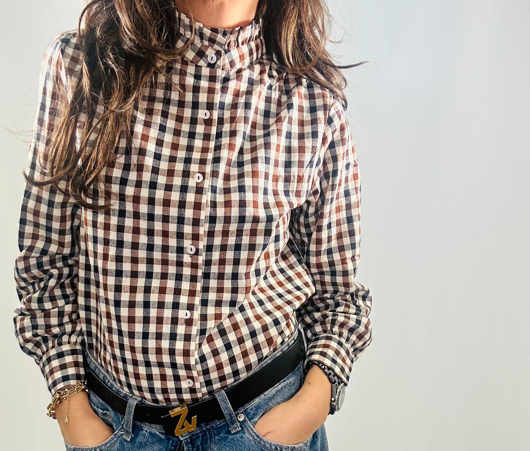 The Quinn check shirt combines timeless elegance with refined detail. Constructed from premium cotton, it showcases a striking checked pattern that exudes understated sophistication. The distinctive frill grandad collar adds a subtle flourish, while the buttoned front and cuffs ensure a polished finish. Long sleeves provide versatility for year-round wear, making this a distinguished addition to any discerning wardrobe.