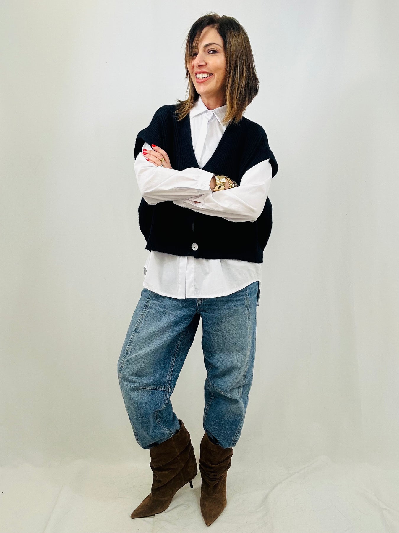 Wear over a tee or shirt, under an over-shirt, with jeans or a skirt.