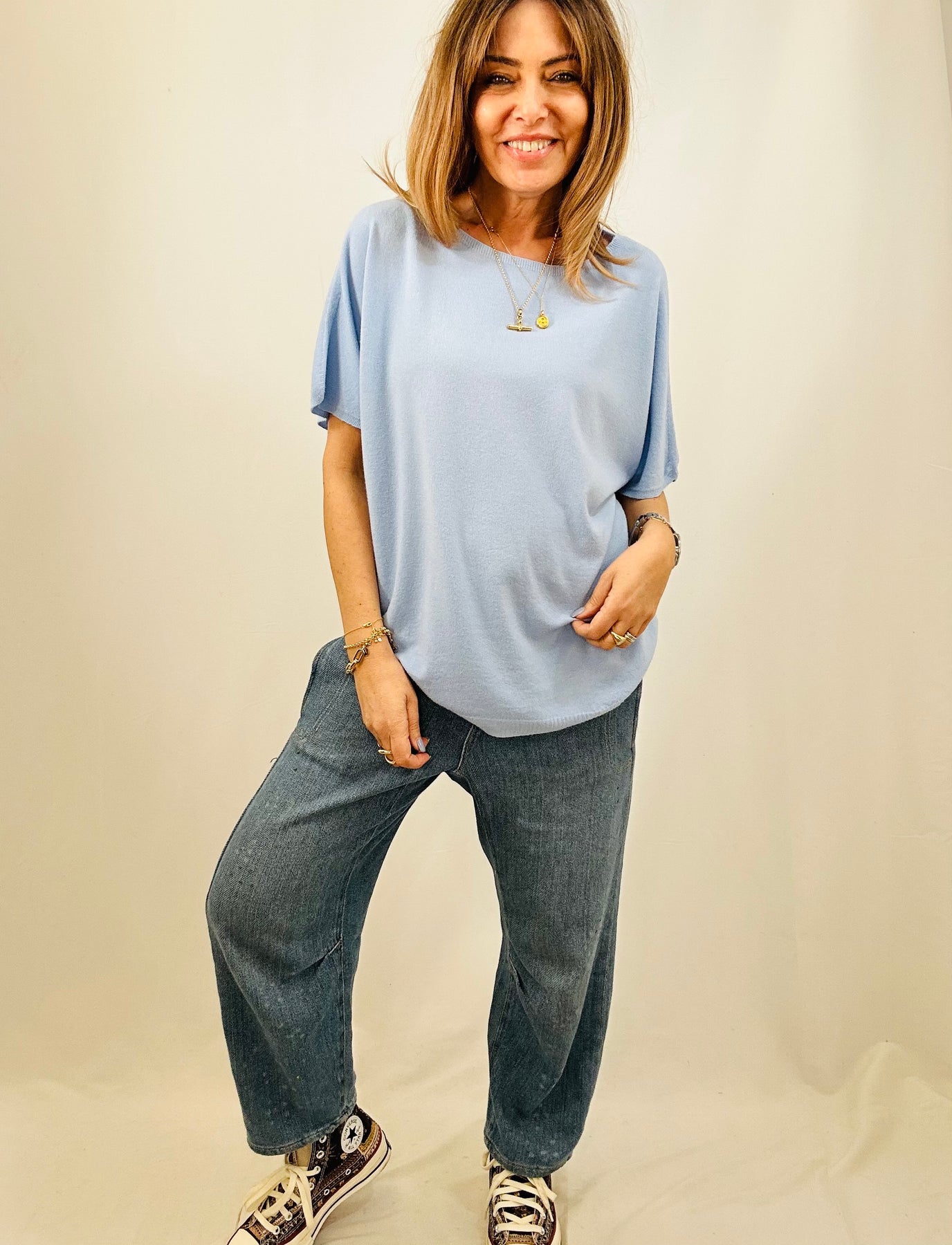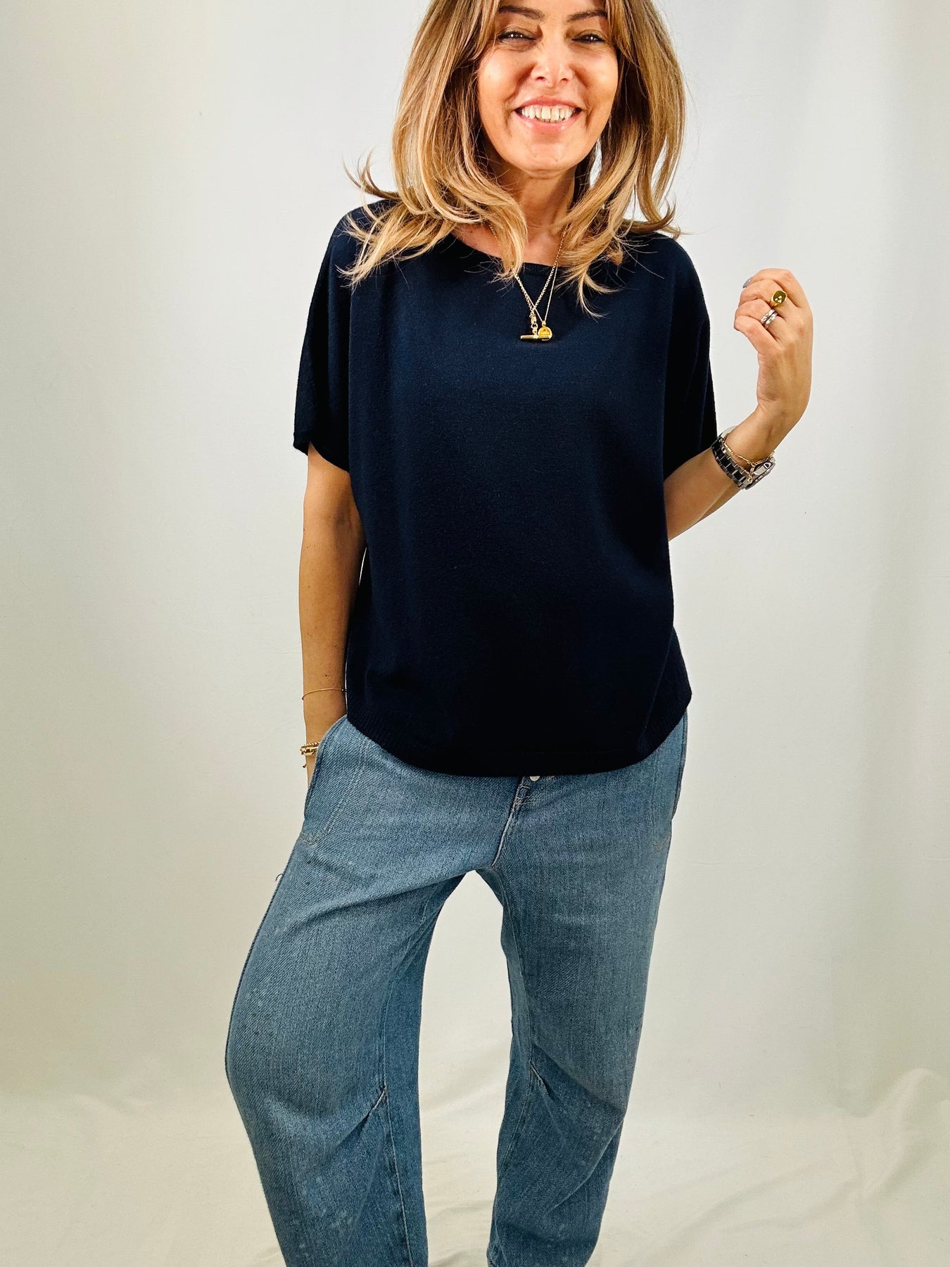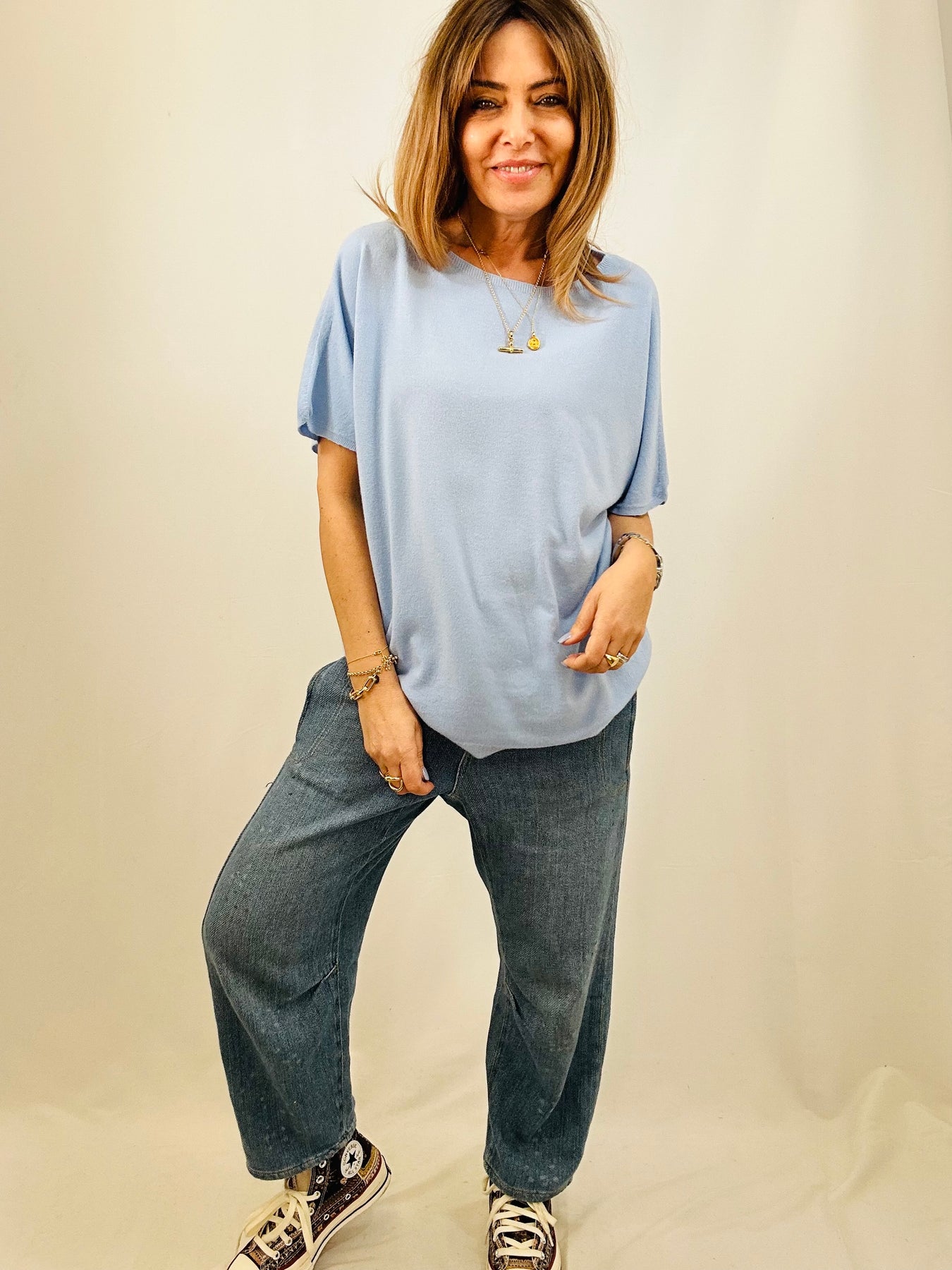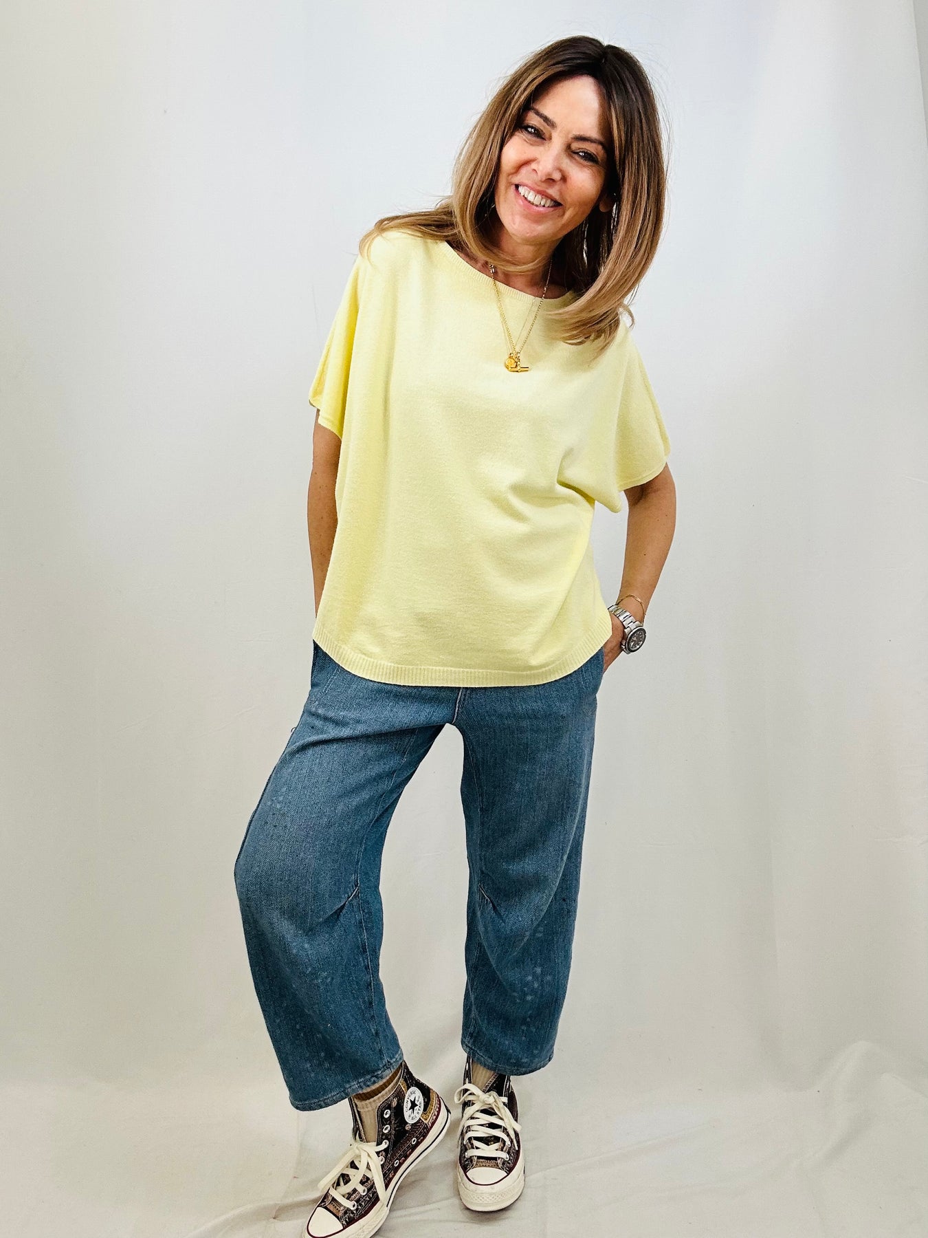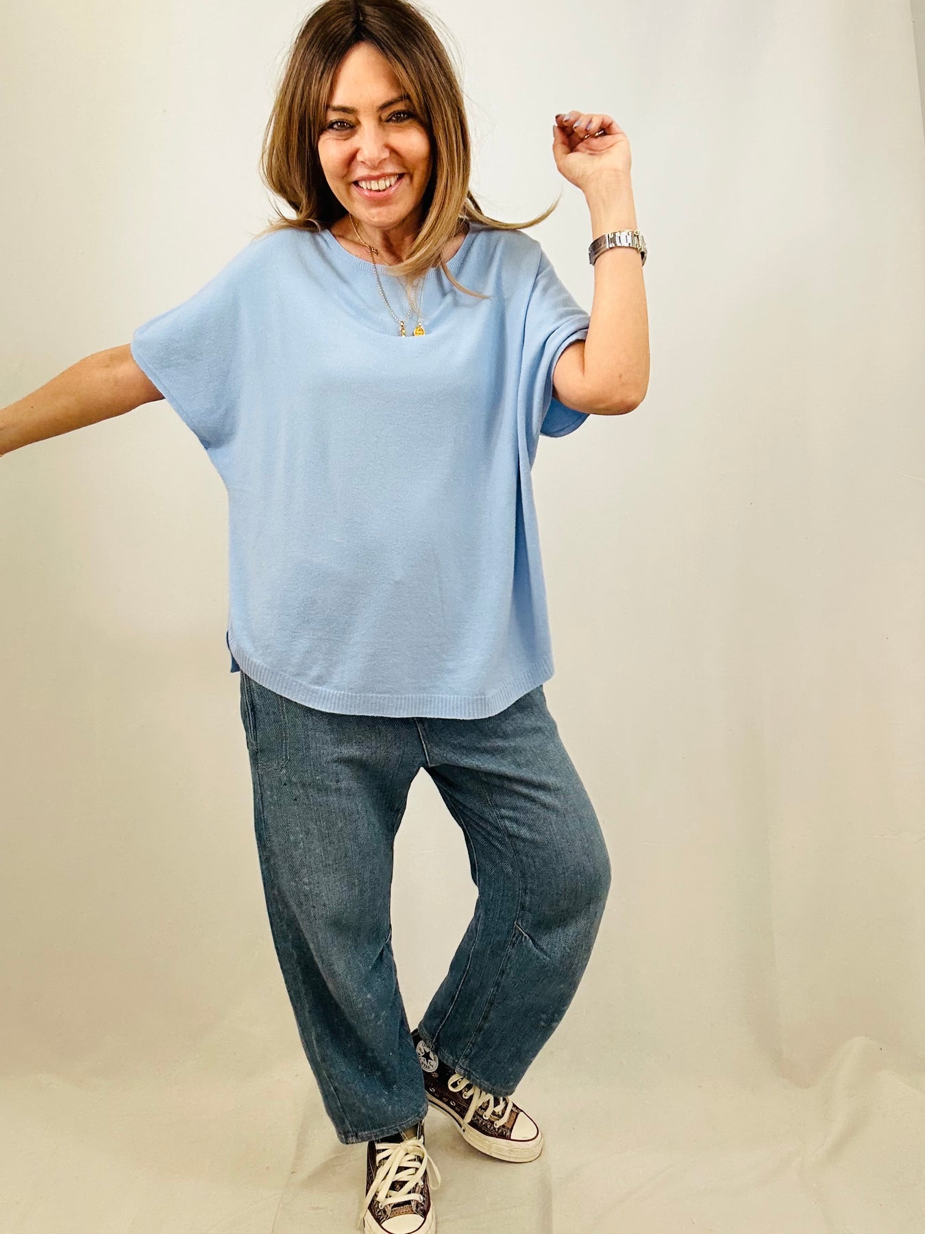 The Honey boxy knit tee is a versatile wardrobe essential crafted from soft, fine knit fabric. Featuring a relaxed, boxy silhouette with a wide round neckline and short batwing sleeves, it's designed to work beautifully on its own or layered over longer pieces. Available in on-trend colourways, this effortless piece transitions seamlessly from casual to styled looks with minimal effort.