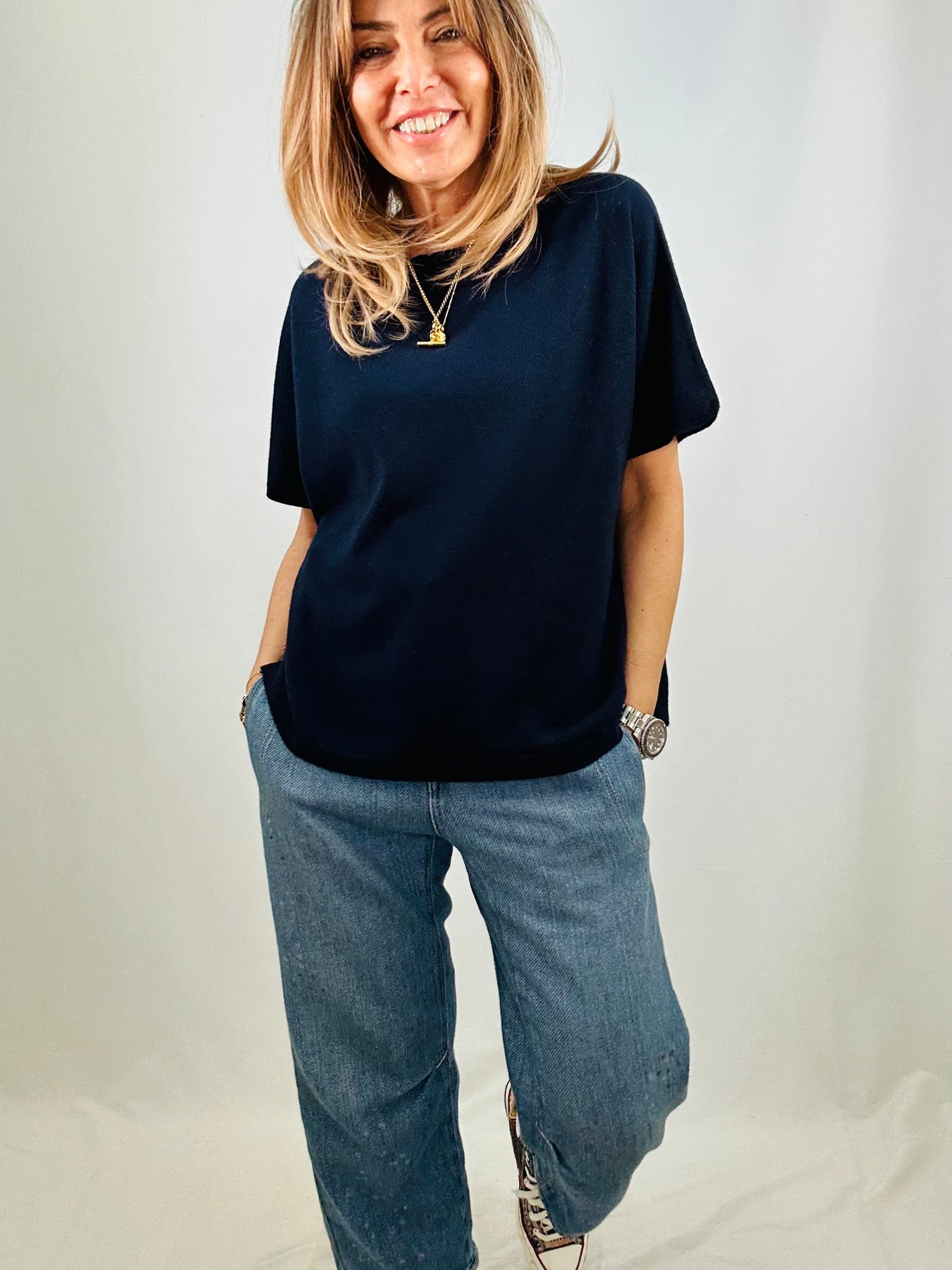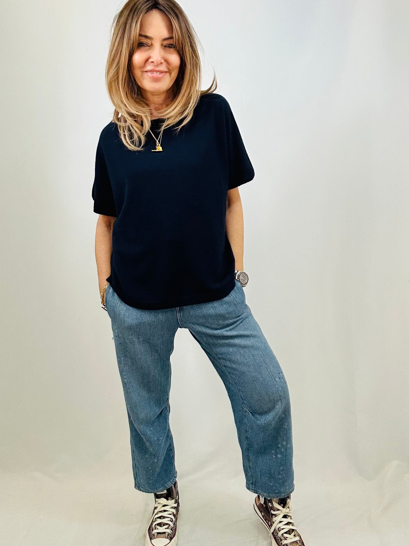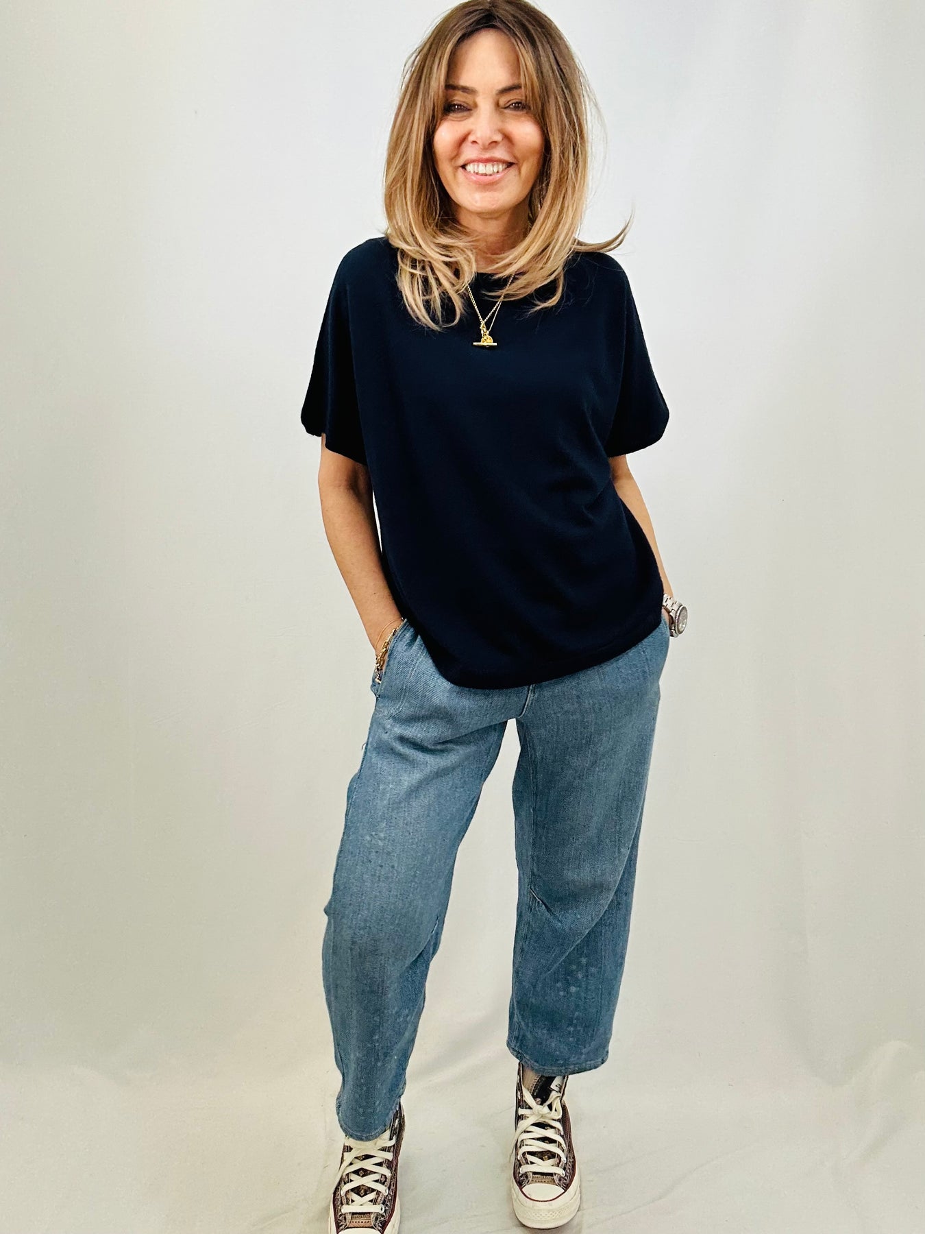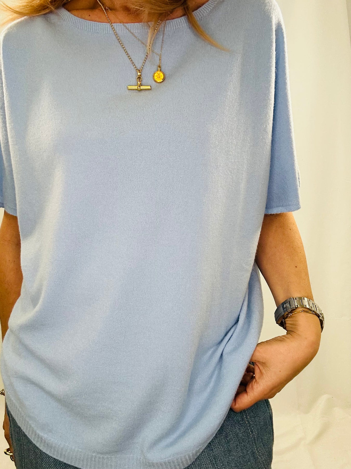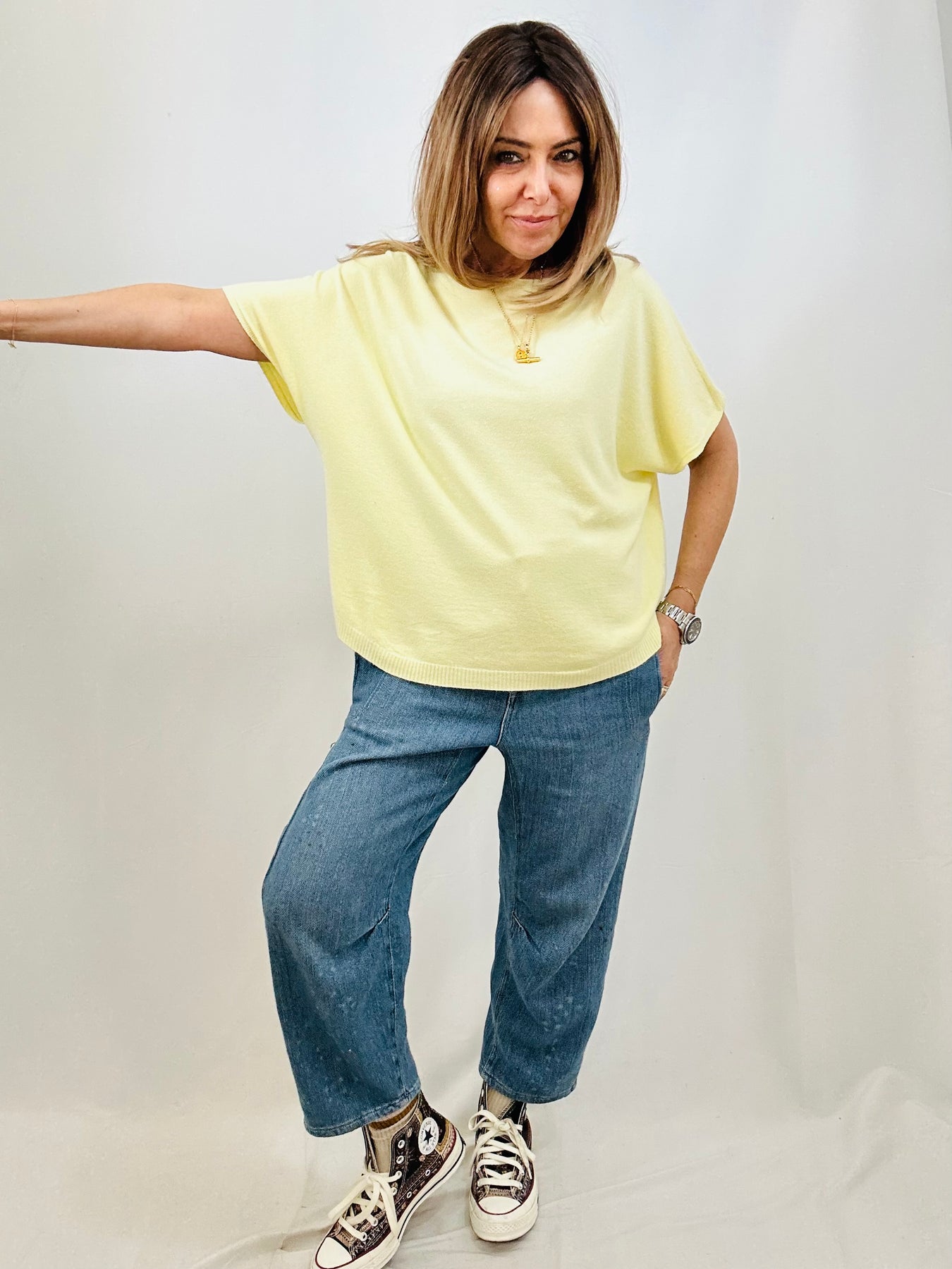 The Honey boxy knit tee is a versatile wardrobe essential crafted from soft, fine knit fabric. Featuring a relaxed, boxy silhouette with a wide round neckline and short batwing sleeves, it's designed to work beautifully on its own or layered over longer pieces. Available in on-trend colourways, this effortless piece transitions seamlessly from casual to styled looks with minimal effort.