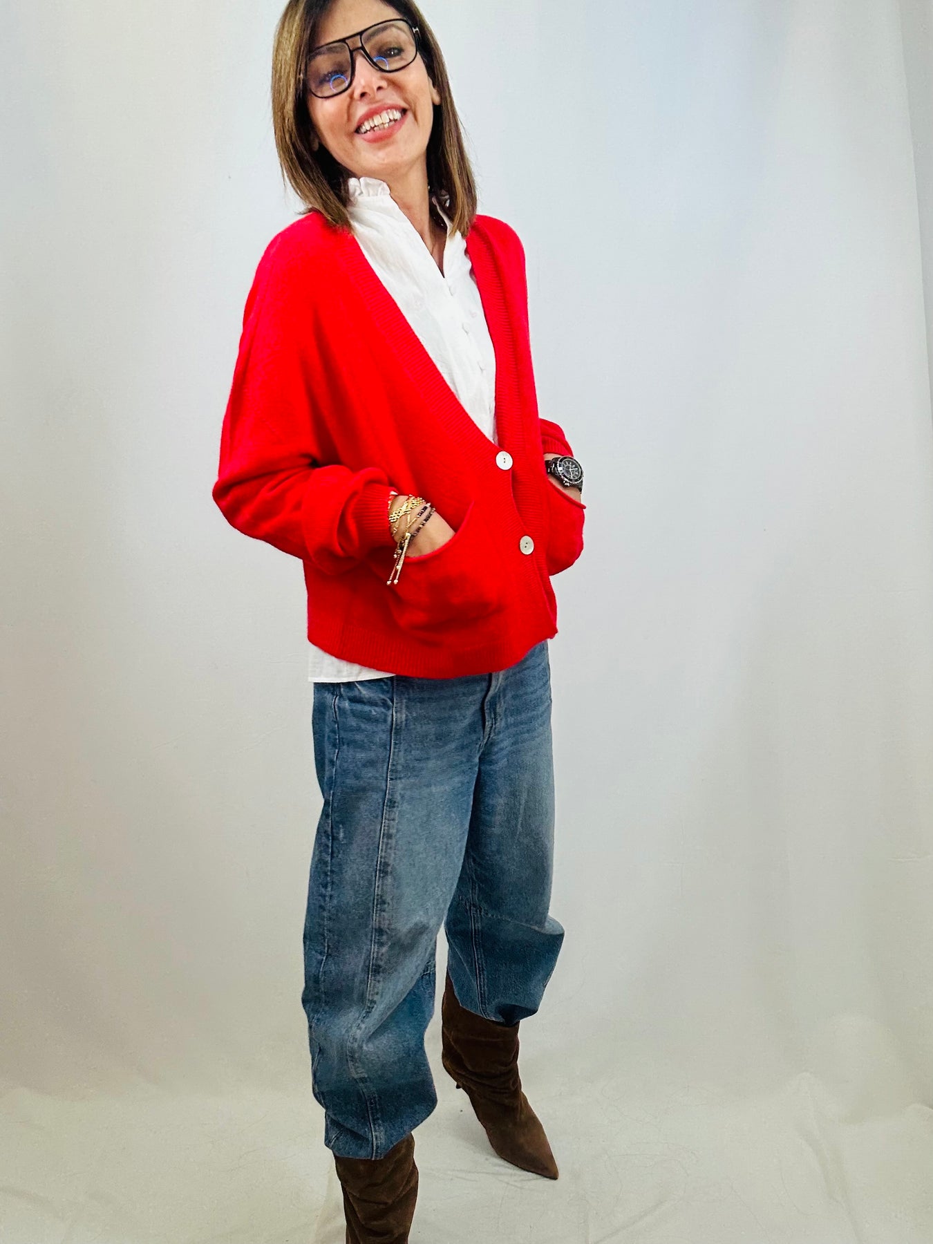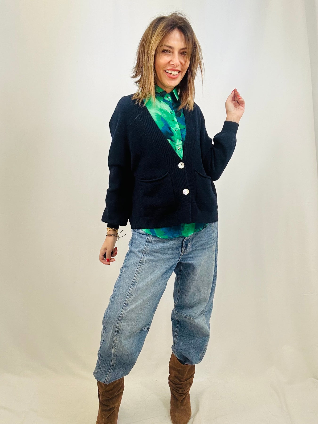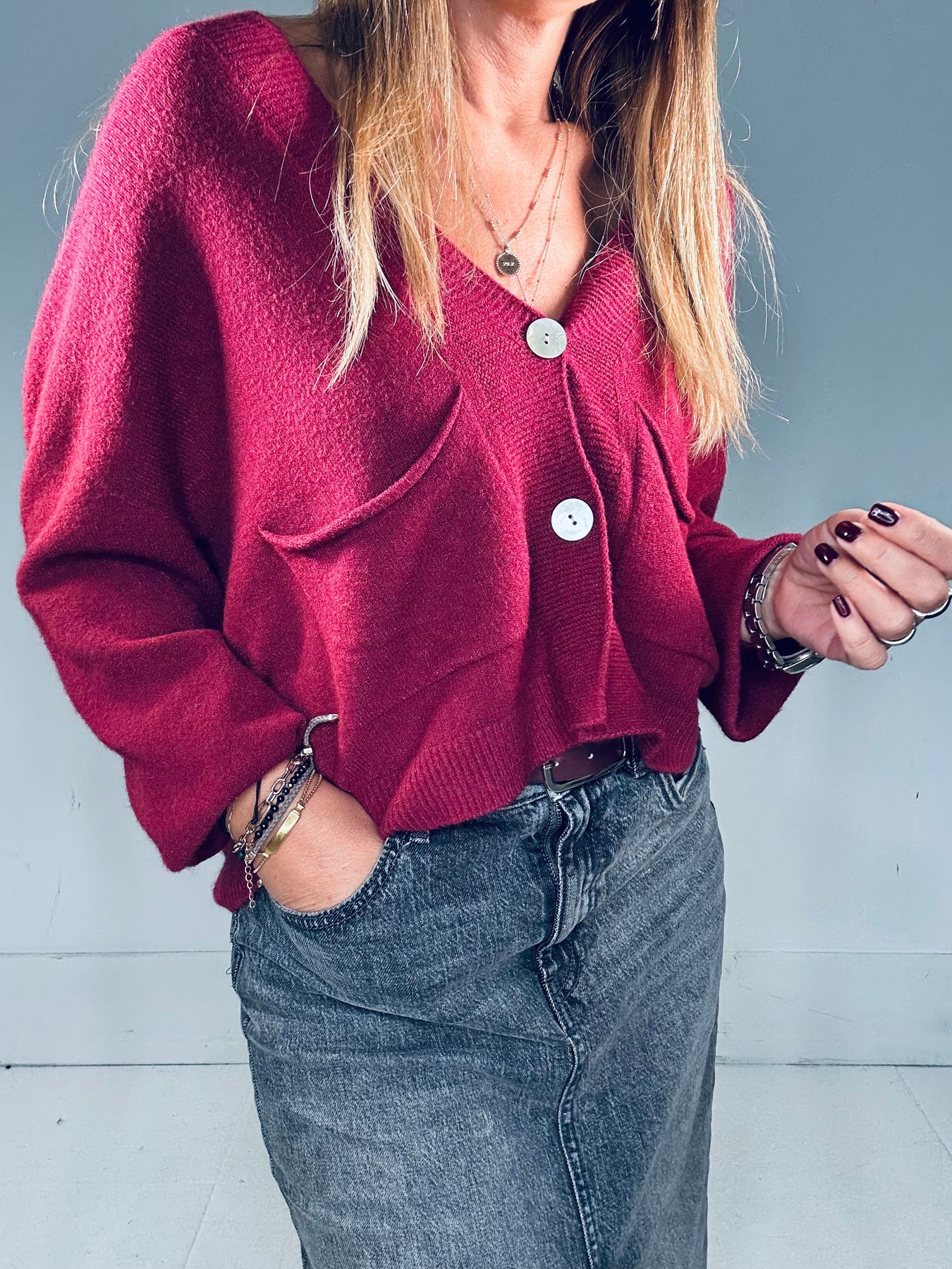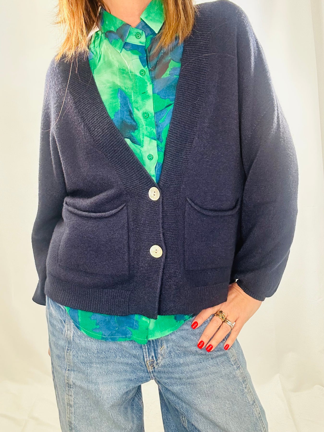 Effortless layering meets lightweight comfort in our soft fine-knit relaxed cardigan – your perfect layering piece.