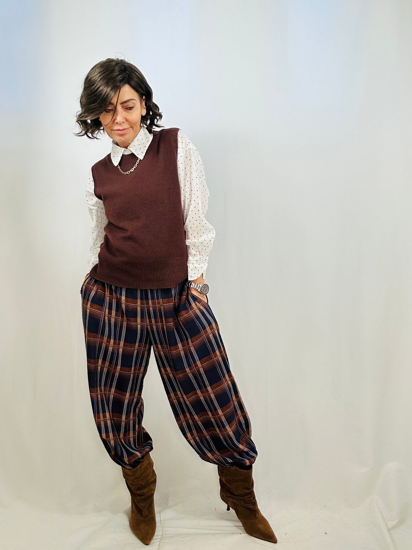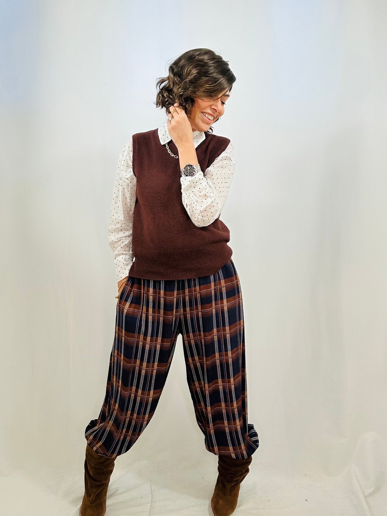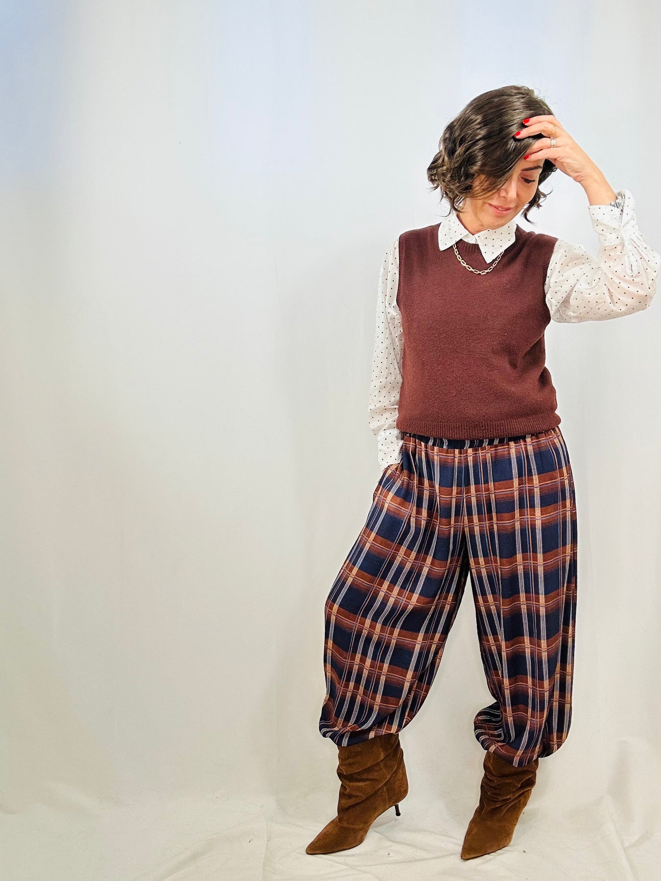 The Remi check balloon pants are this season's must-have staple. Dressed in a bold check print that captures the moment, they offer a relaxed, voluminous fit that feels as good as it looks. With elasticated details at the waist and hem, comfort is built in—no adjusting needed. Pair them with anything in your wardrobe and watch them work their magic.