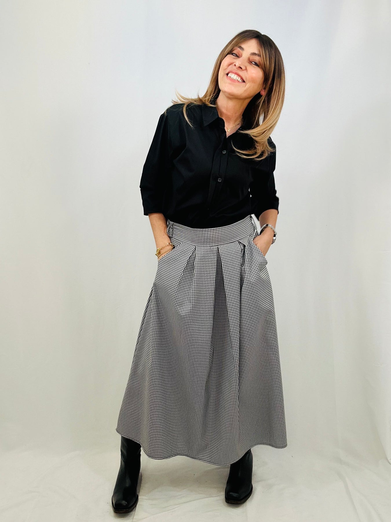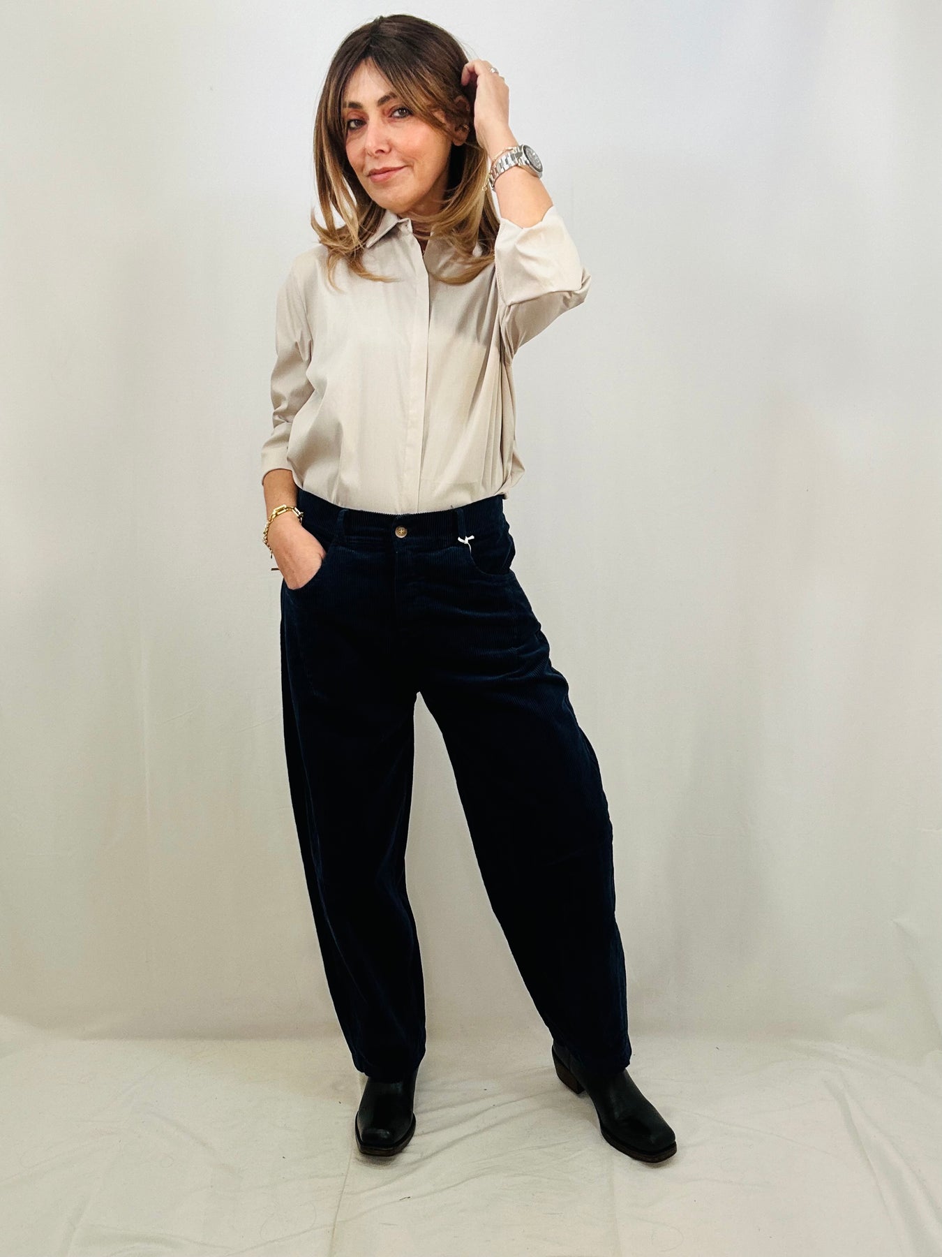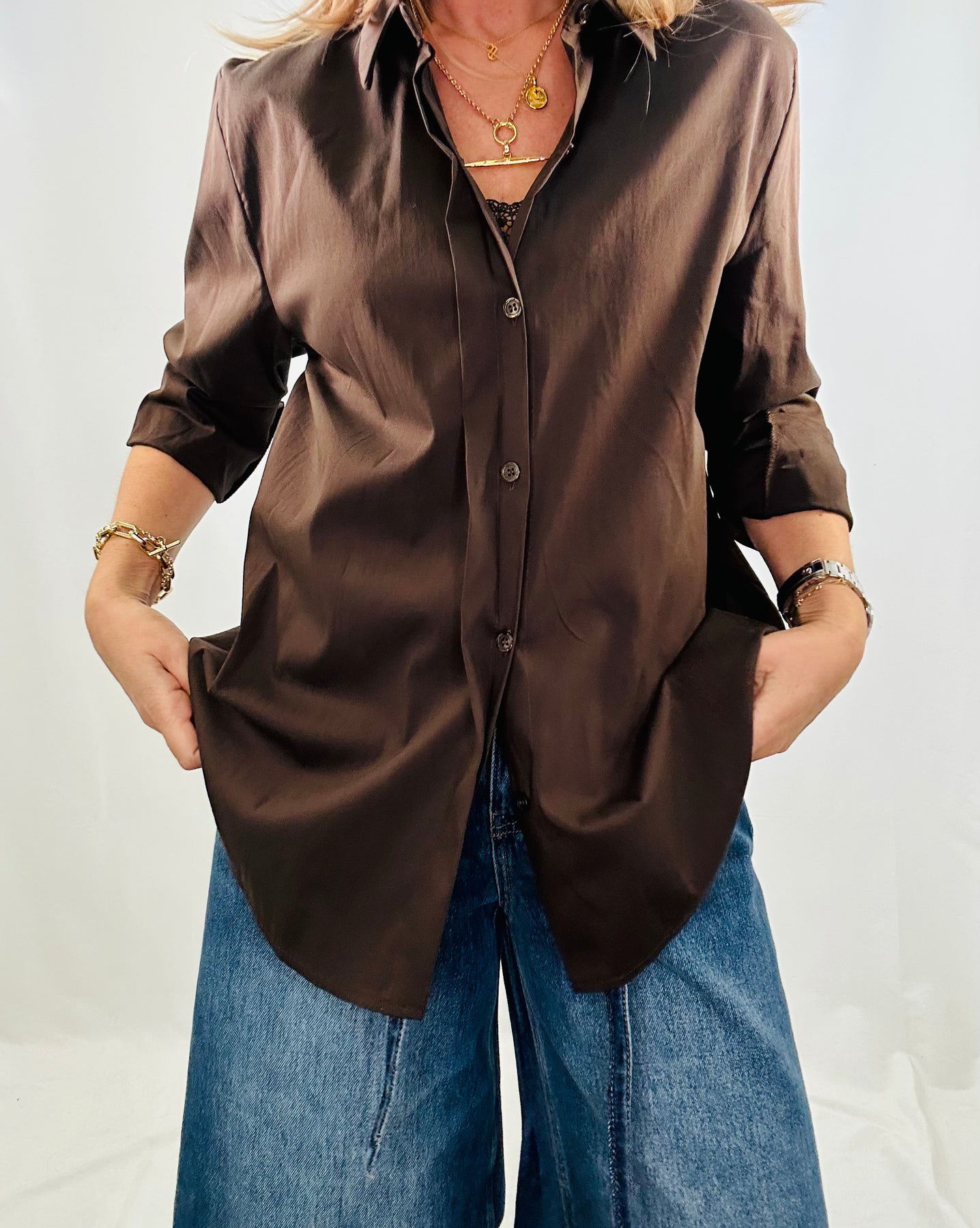 Upgrade your wardrobe with our Sabine long sleeve shirt. Meticulously designed in a soft cotton blend with stretch for all-day comfort. The concealed button placket adds a sleek touch, while the longer length lends a sophisticated look. A must-have for any professional or formal occasion.