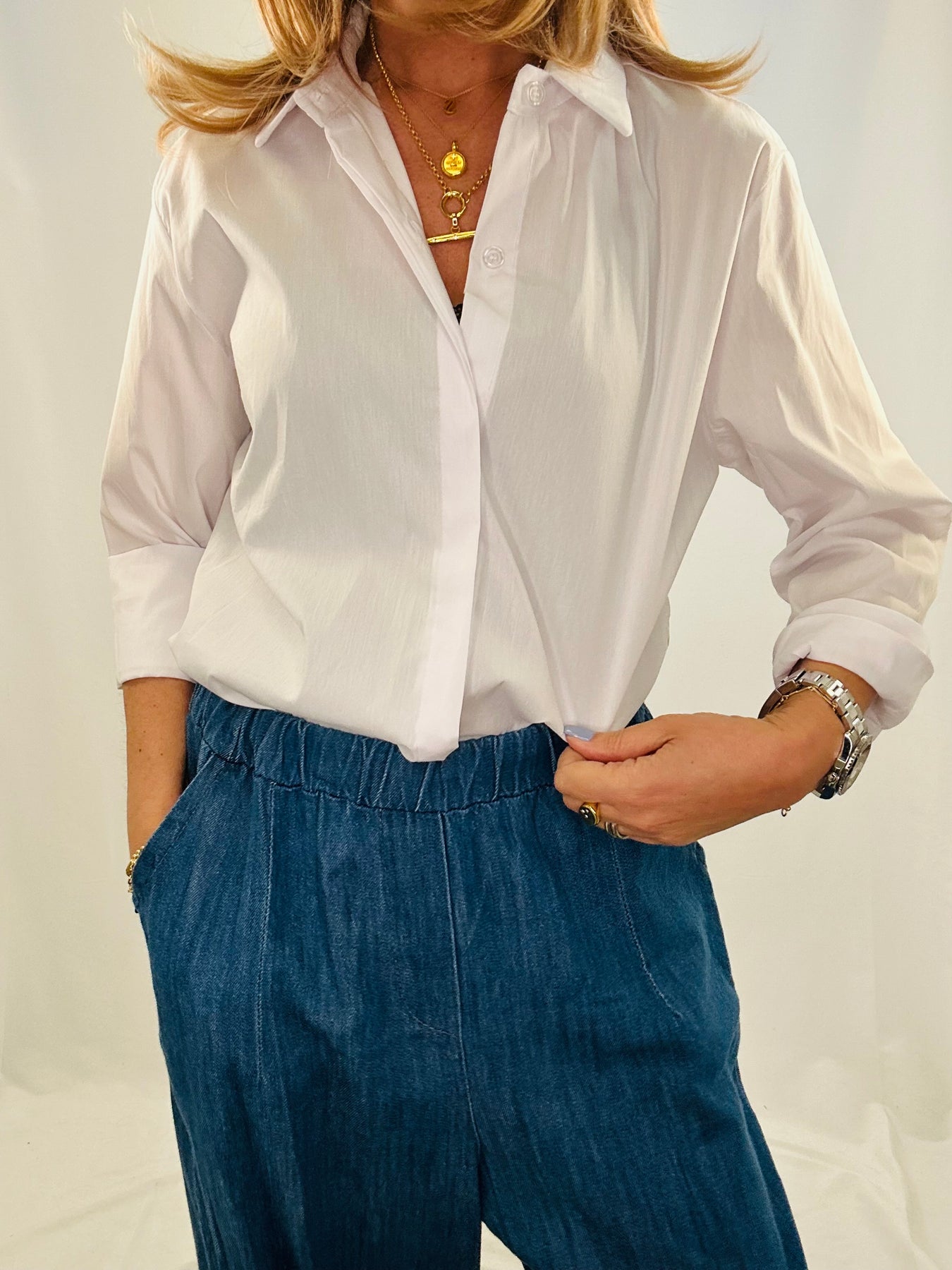 Slim shape but generously sized, classic shirt, easy to style, 70% cotton.
